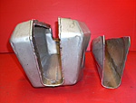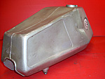 On tanks with marble sized dents, in certain cases the tunnel may not be removed. A small access area is opened, the repair is made, the hole is welded and the tank is ready for polishing or paint. The aluminum gas tank on your Honda Elsinore 250, CZ Falta replica, Maico, BSA, Triumph etc. will look like new. The same method is applied to painted aluminum tanks where dents are exceptionally large or deep.